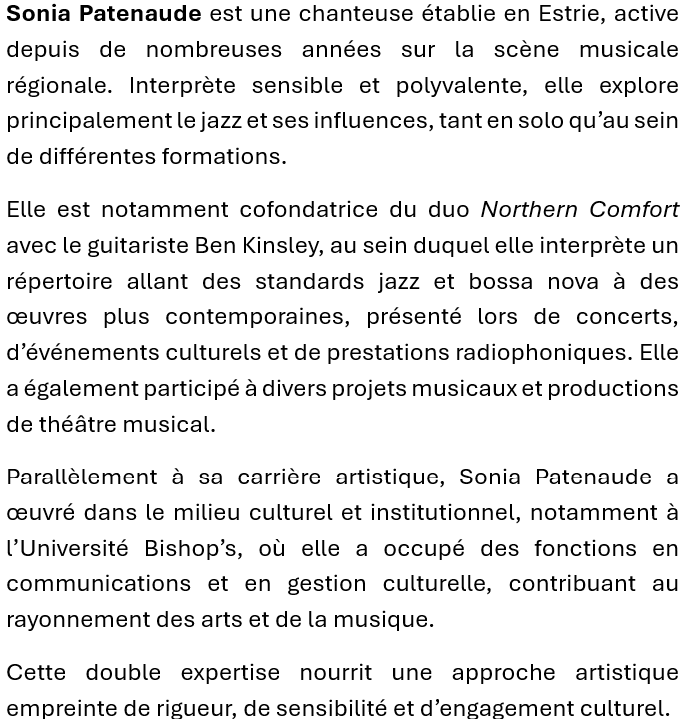 EN RÉSIDENCE À LA SALLE BANDEEN DE L’UNIVERSITÉ BISHOP’S Notre programmation Notre programmation Notre programmation
